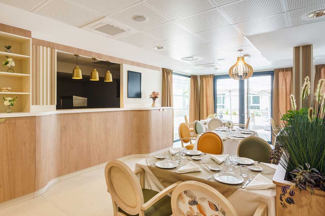 Cette maison de retraite médicalisée offre de nombreux espaces de vie afin de favoriser le partage et les interactions entre les résidents.