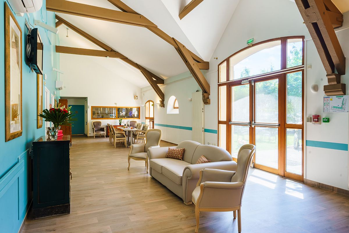 Les espaces de vie intérieurs comprennent un salon "Ronsard" pour les activités de groupe, un salon "Hortensias" plus intime, et des espaces de détente à chaque étage.