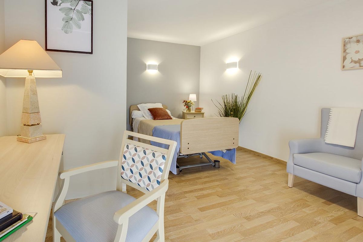 Les chambres de La Quintessence sont équipées d'un mobilier adapté à la perte d'autonomie et peuvent décorés avec des objets personnels selon les préférences des résidents.