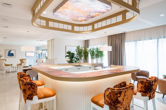 Salons, bar, tables de jeux, salon avec écran géant : les résidents peuvent s’y retrouver pour des jeux de société, échanger et participer aux activités proposées.