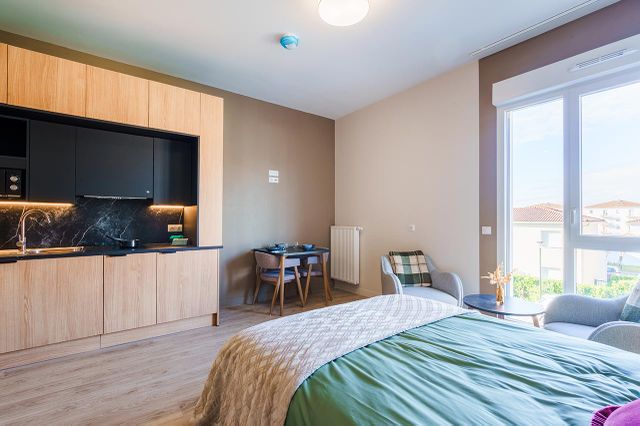Le Club Palois propose des appartements en location, alliant confort et modernité. Deux tailles d’appartements sont disponibles : T1 (28 m²) et T2 (43 m²).